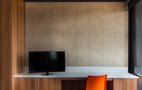 In our guest rooms, we've used ECOCARAT Allophane tiles, a mineral with micro-pores for comfort. These tiles control indoor moisture, purify the air, and prevent mold, mites, volatile organic compounds, and odors. This thoughtful design enhances the room's aesthetics and prioritizes your safety and comfort.